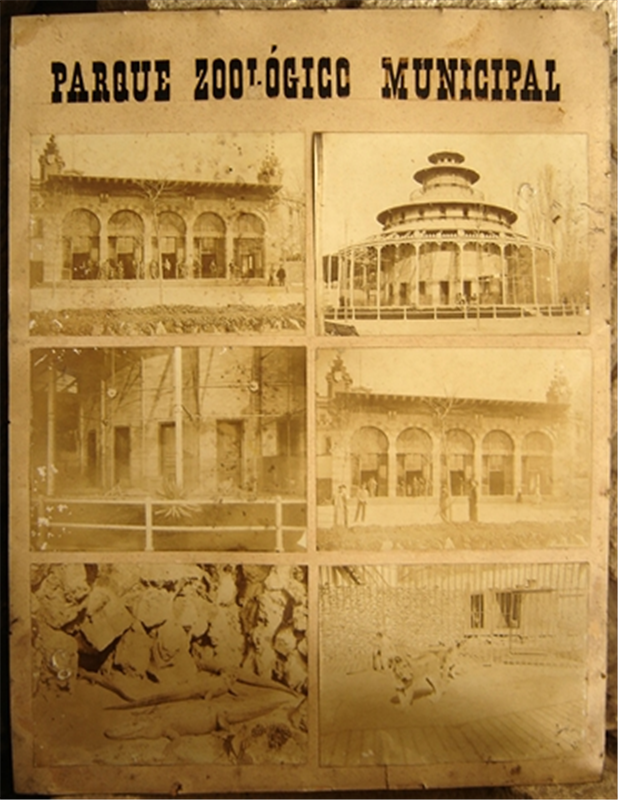 Les sis fotografies medeixen 22 per 16 cm. Dues corresponen a un edifici del Parc anomenat “Casa dels lleons”. Dos més corresponen a diversos caimans i a uns lleons, respectivament, mentre que les altres dues són d’un edifici circular, que per les imatges es dedueix que s’utilitzava com aviari. Després de posar-nos en contacte amb el Parc Zoològic de Barcelona, vam saber que ells no tenien referència de l’existència d’aquestes fotografies, i que en el cas de l’aviari, es tractava d’un edifici del que no en tenien cap informació. Fins i tot, semblaria que les nostres fotografies els podran servir per identificar-ne algunes del seu fons en què apareixen parts d’un edifici que podria molt ser aquest aviari.
