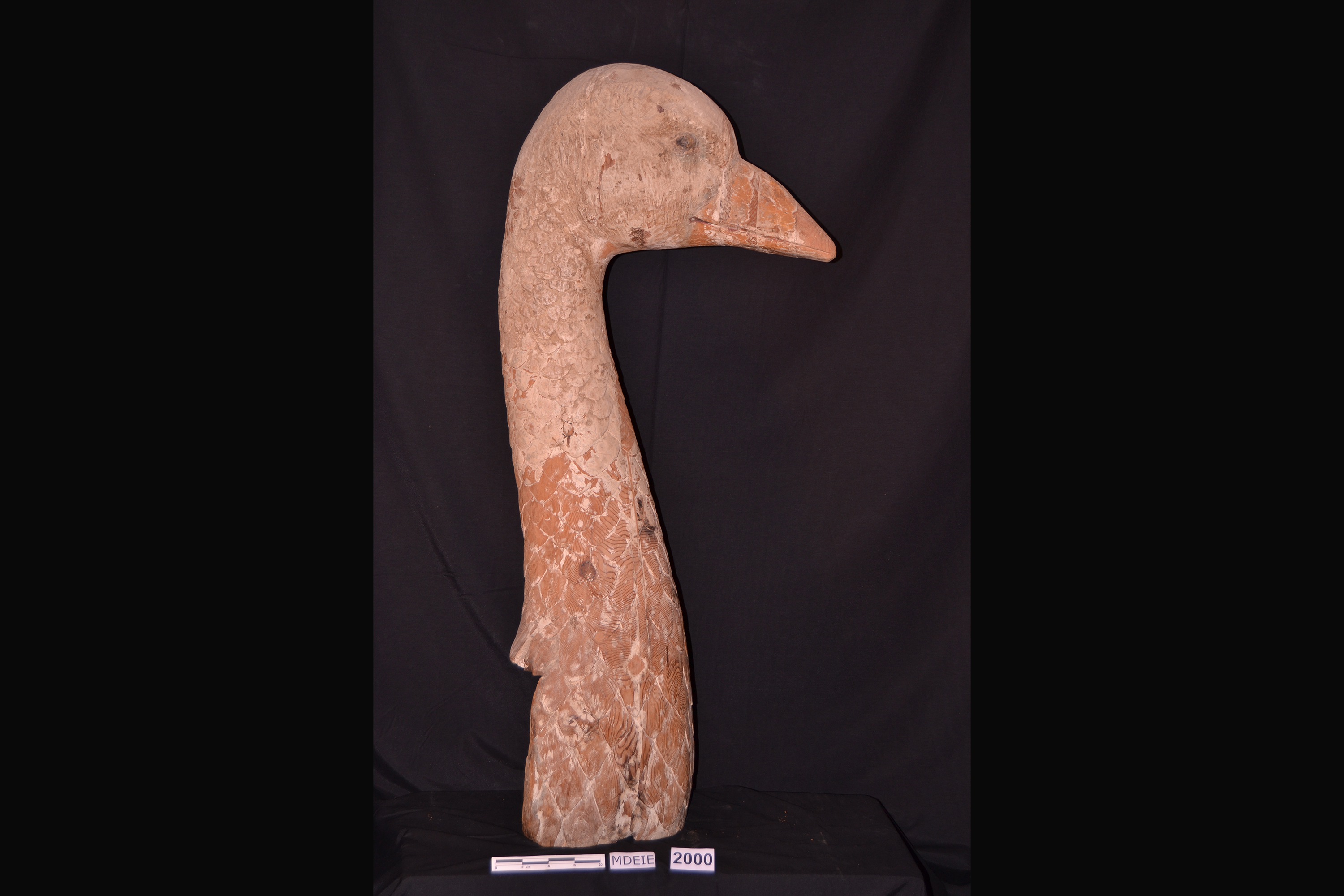 El mascaró de proa de la primera barca de l’oca de l’Estany de Banyoles ens transporta cap a aquells temps passats en què el turisme es trobava encara a les beceroles i els passejos per dins l’Estany de Banyoles potser es limitaven a una romàntica ruta per les seves vores, sense endinsar-se en zones de més fondària, aleshores tan desconegudes com les fosses més profundes de l’oceà.