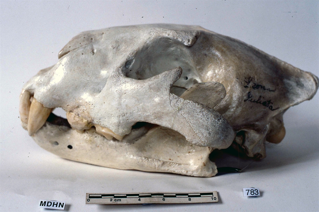 El crani de la lleona Julieta es pot veure en la vitrina dedicada a la taxidèrmia, a l’Espai Darder.